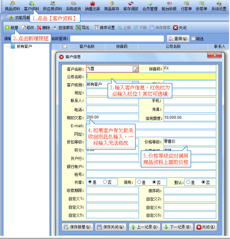 如果在建立系統之前該客戶有欠款可以直接錄入,一經建立后不可修改,會反應在欠款總帳上。 |