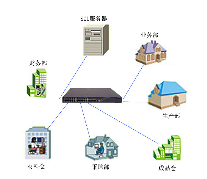 公司內部購買一臺路由器/交換機,將各個部門電腦連接在一起搭建成一個局域網。搭建局域網方法可參考相關資料。